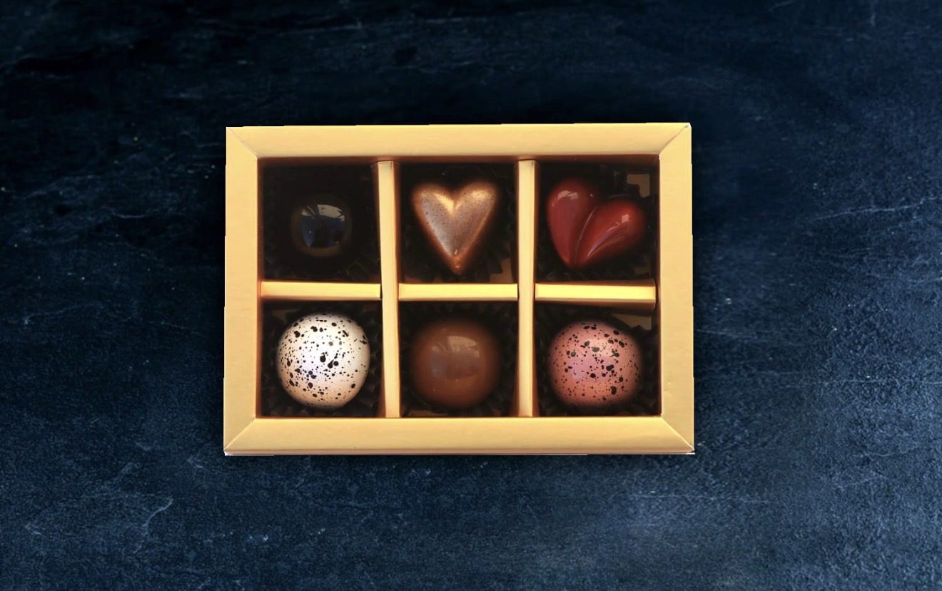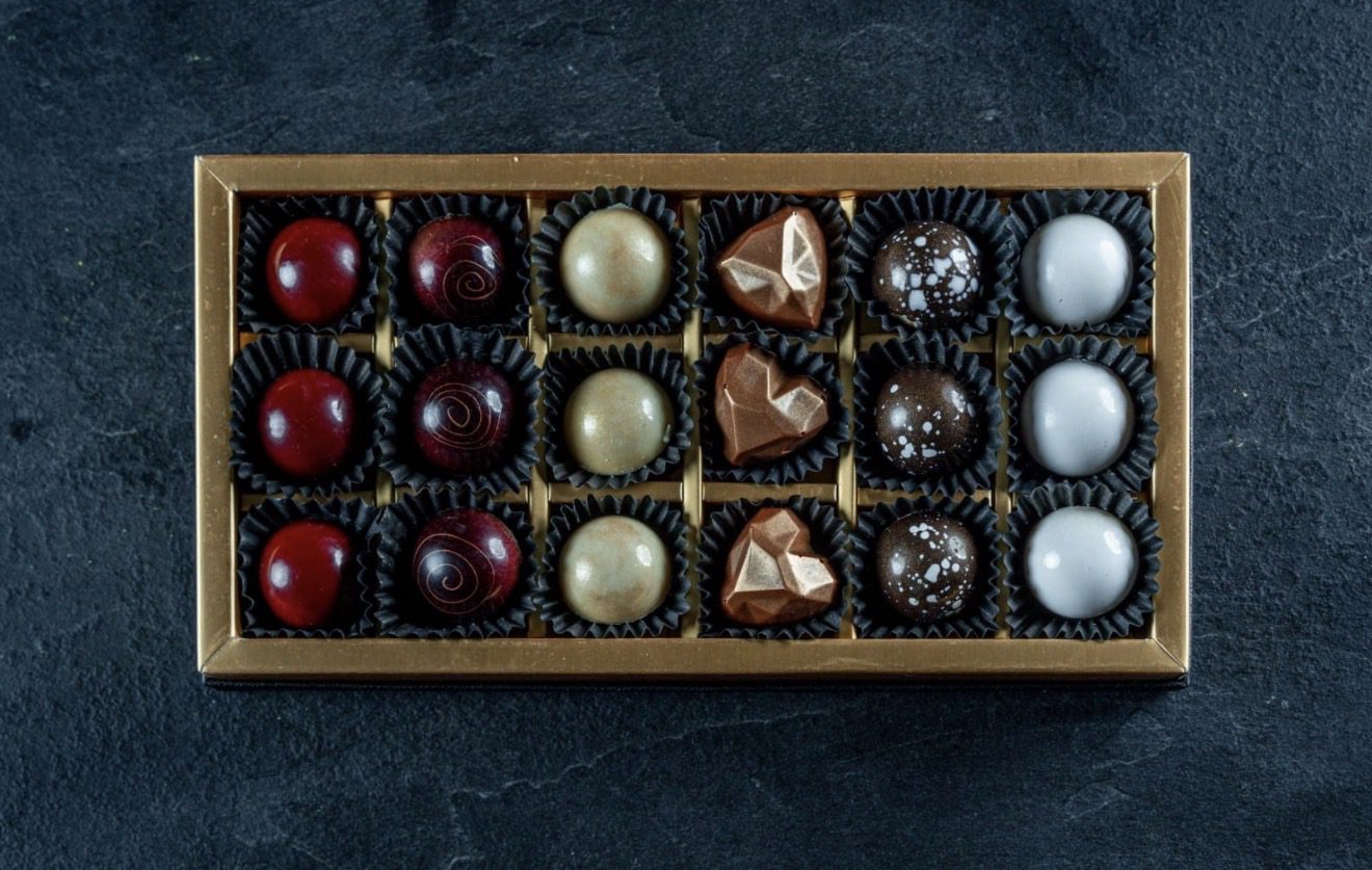 Luxurious, handmade pralines made from fine chocolate, featuring a curated selection of vibrant flavors and an elegant variety of colors. .