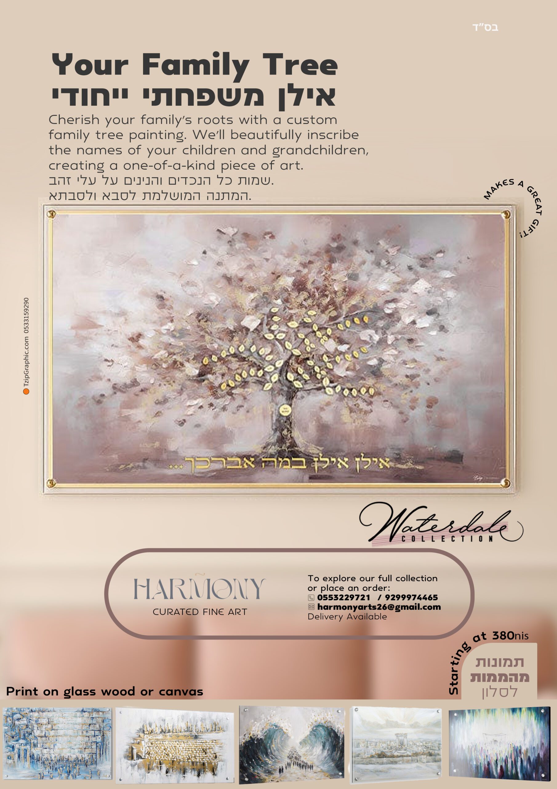 Harmony Curated Fine Art is here to offer Waterdale Art in Israel! You can print on glass,wood or canvas in the size that suits your wall. Reach out to us to see our catalog and live samples.