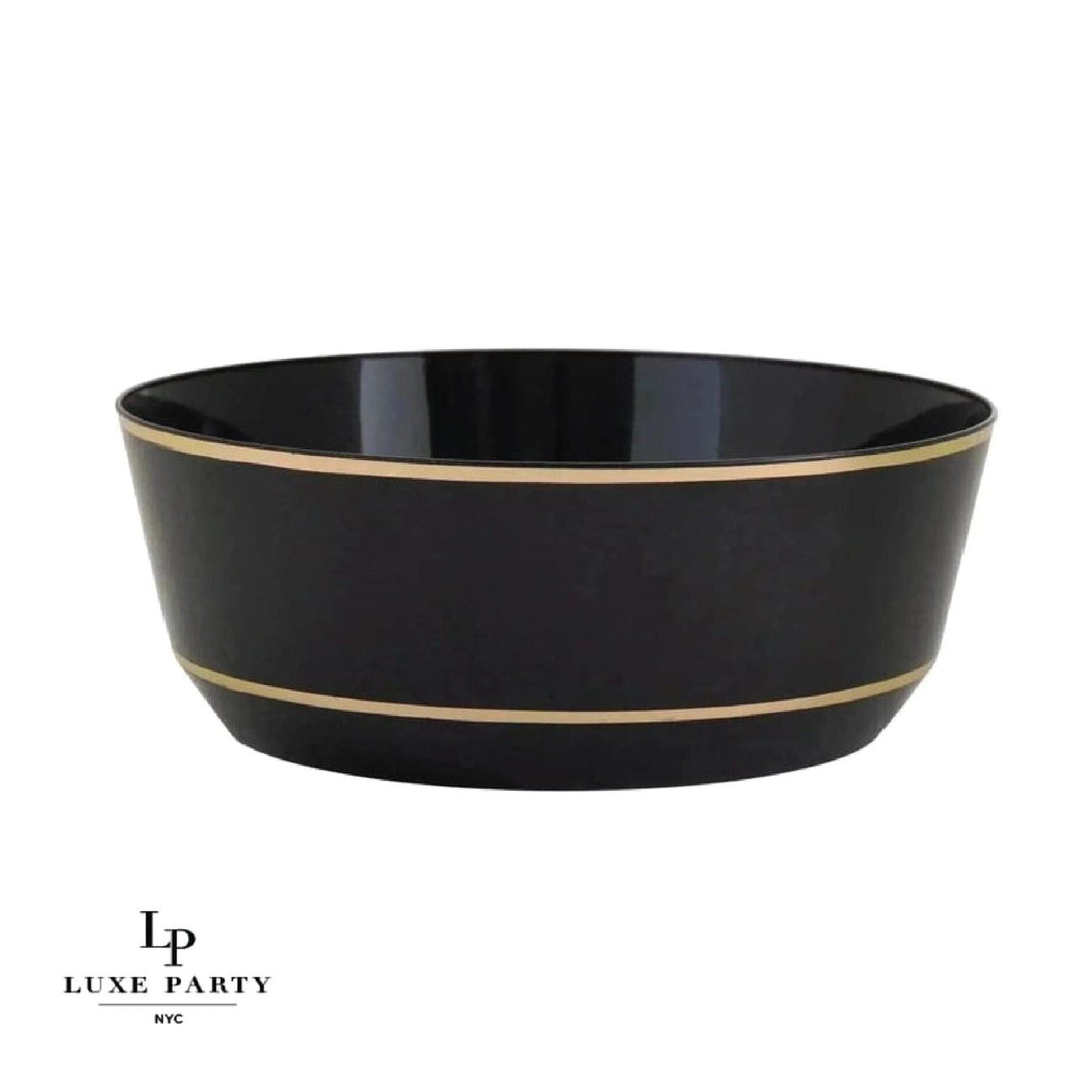 14 Oz. Round Black • Gold Plastic Soup Bowls | 10 Pack