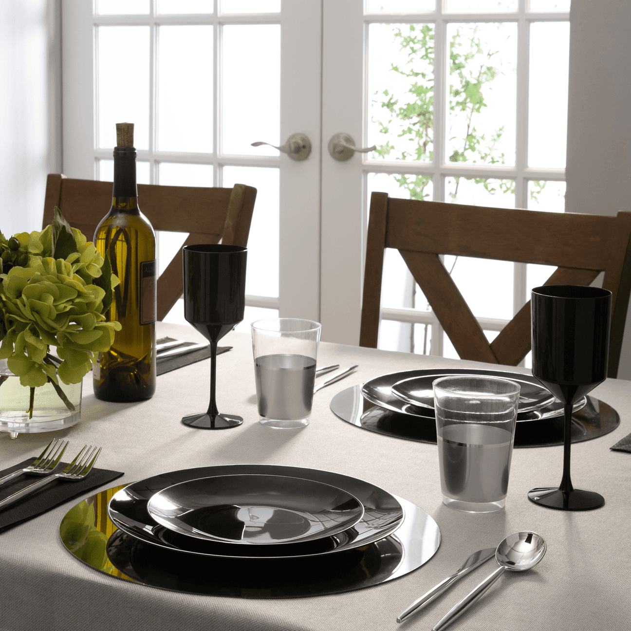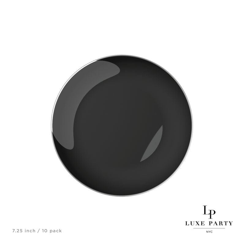 Black and Silver Round Plastic appetiser Plates | 10 Pack