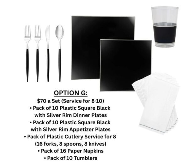 • ⁠Pack of 10 Plastic Square Black with Silver Rim Appetizer Plates