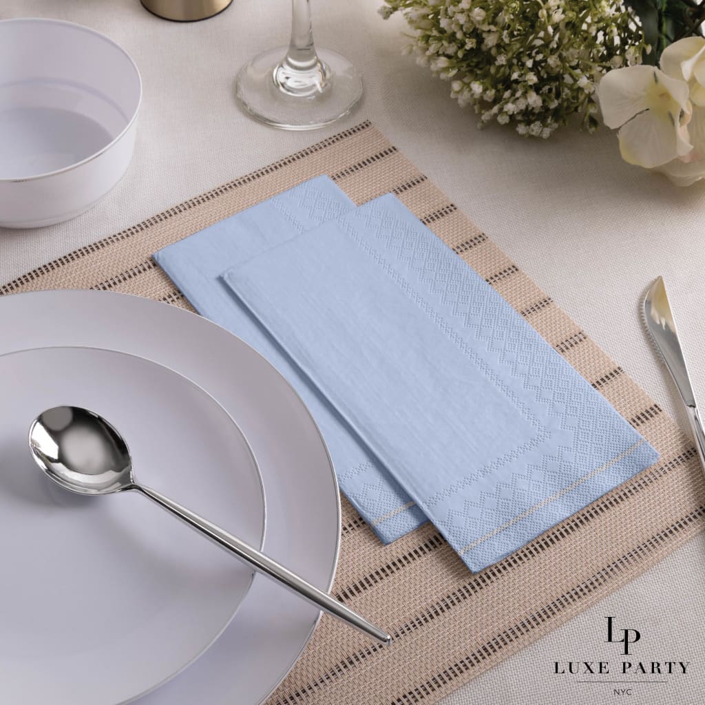 Ice Blue with Silver Stripe Guest Paper Napkins | 16 Napkins