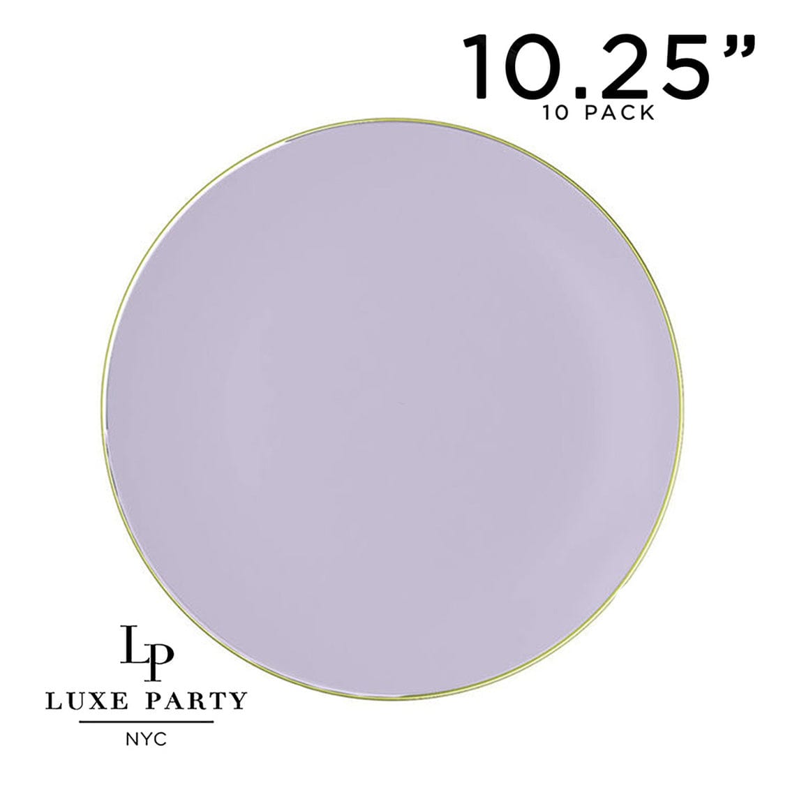 Lavender Purple and Gold Round Plastic dinner Plates | 10 Pack quantity