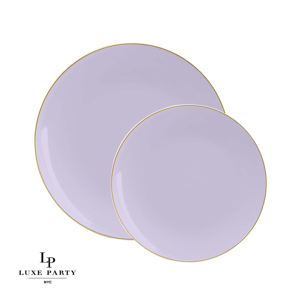 Lavender Purple and Gold Round Plastic dinner Plates | 10 Pack