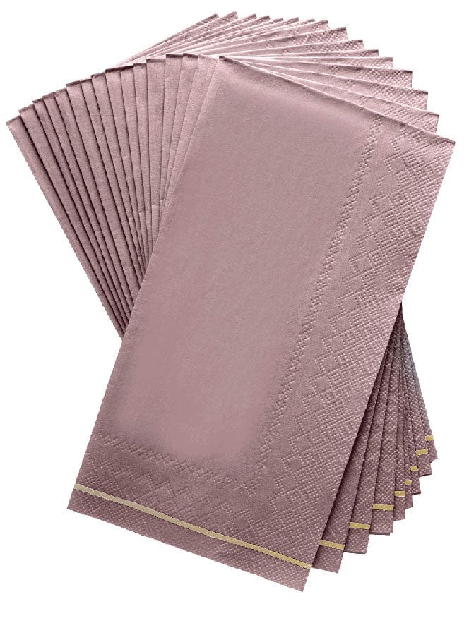 Mauve with Gold Stripe Guest Paper Dinner Napkins | 16 Napkins