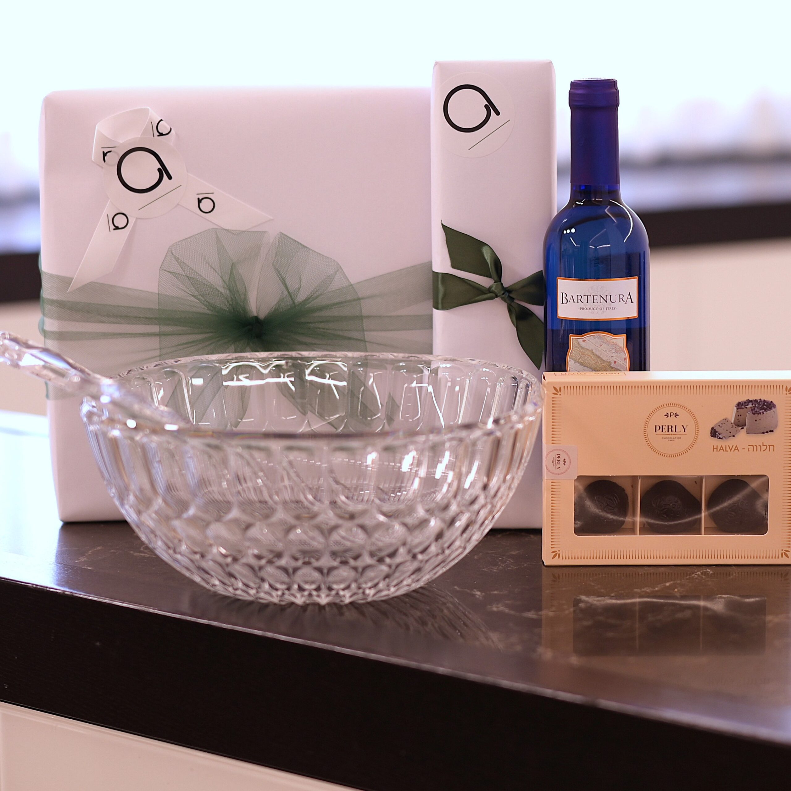 Mishloach Manos | Vanity Bowl & Servers, Wine and Chocolates