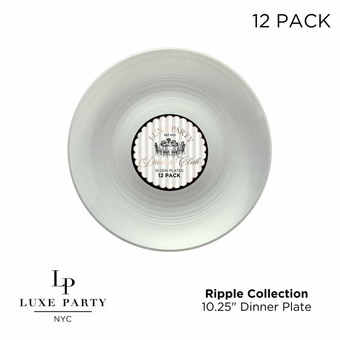 Round 10.25″ Ripple White Dinner Plastic Plates | 12 Plates