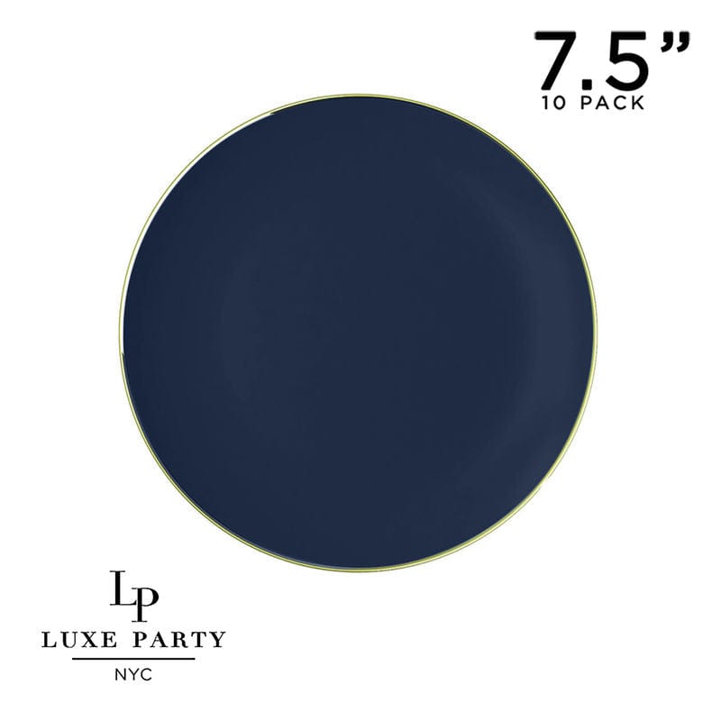Round Navy Blue and Gold Plastic appetiser Plates | 10 Pack