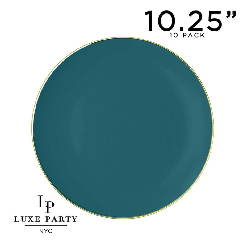 Round Teal Green and Gold Plastic dinner Plates | 10 Pack