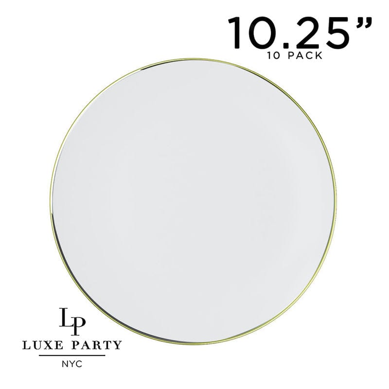 Round White and Gold Plastic dinner Plates | 10 Pack