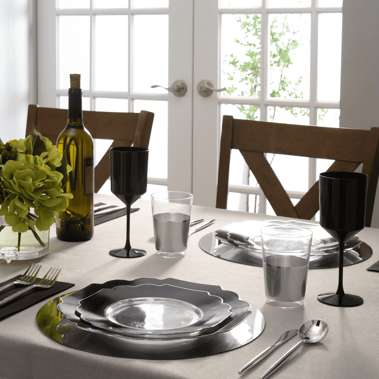 Scalloped Clear Black dinner plates• Gold Plastic Plates | 10 Pack