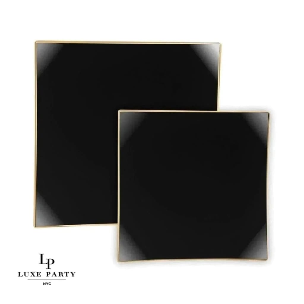 Square Black • Gold Pattern Plastic appetiser Plates | 10 Plates