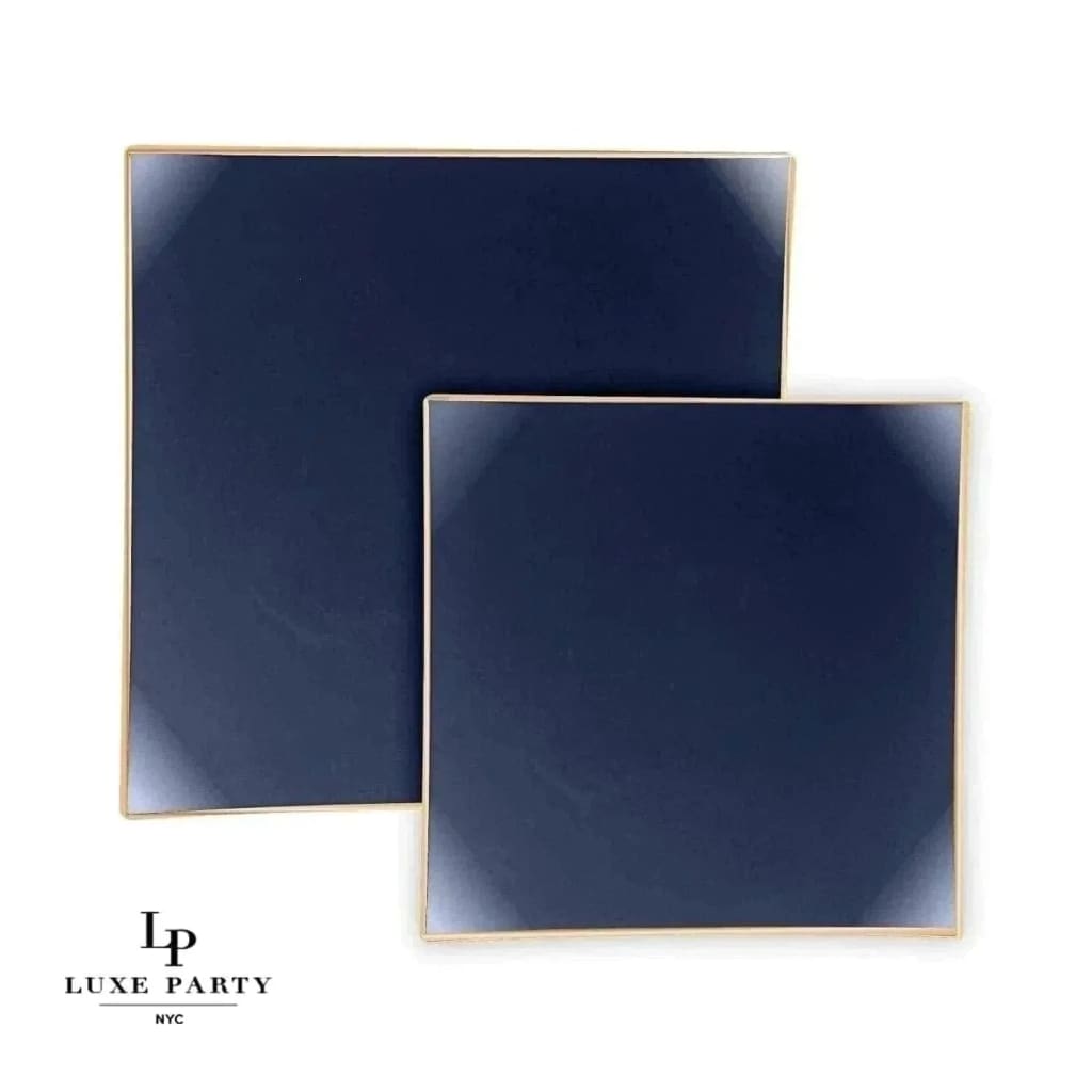 Square Coupe Navy • Gold Plastic appetiser Plates | 10 Pack