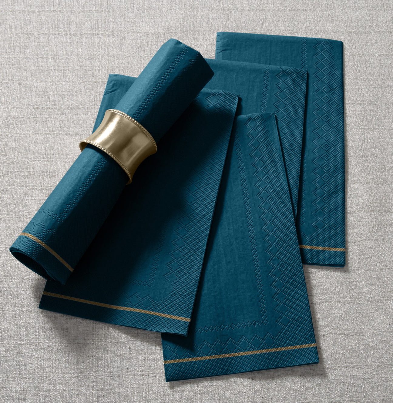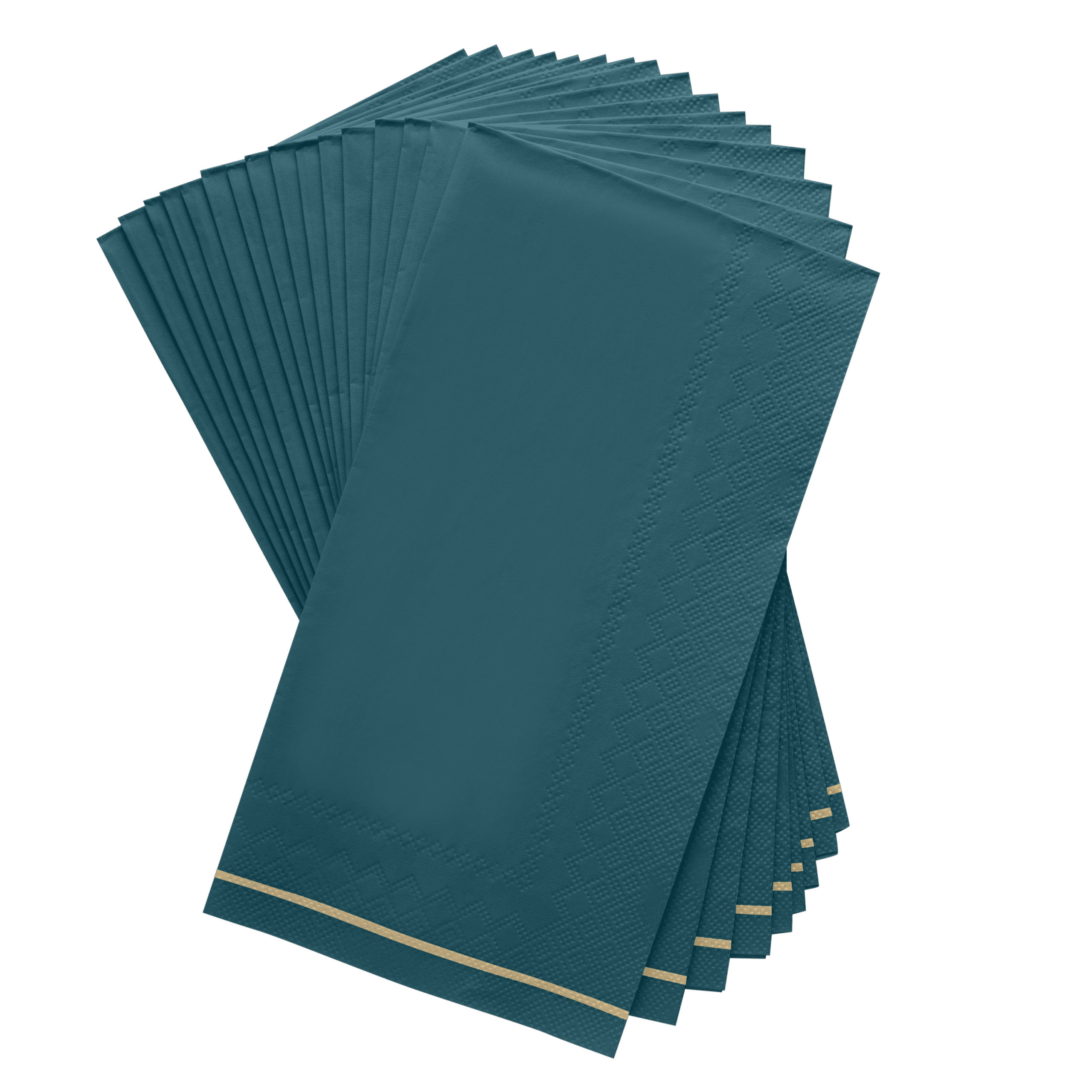 Teal Green with Gold Stripe Guest Paper Dinner Napkins | 16 Napkins