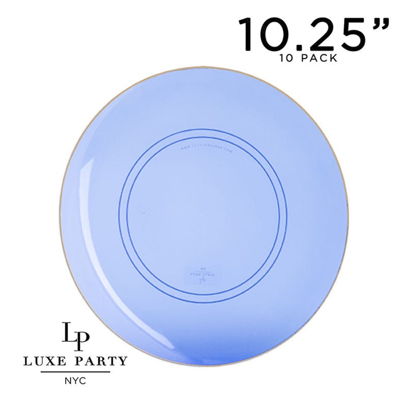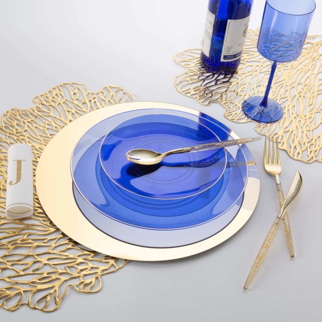 Transparent Navy Blue and Gold Round Plastic dinner Plates | 10 Pack