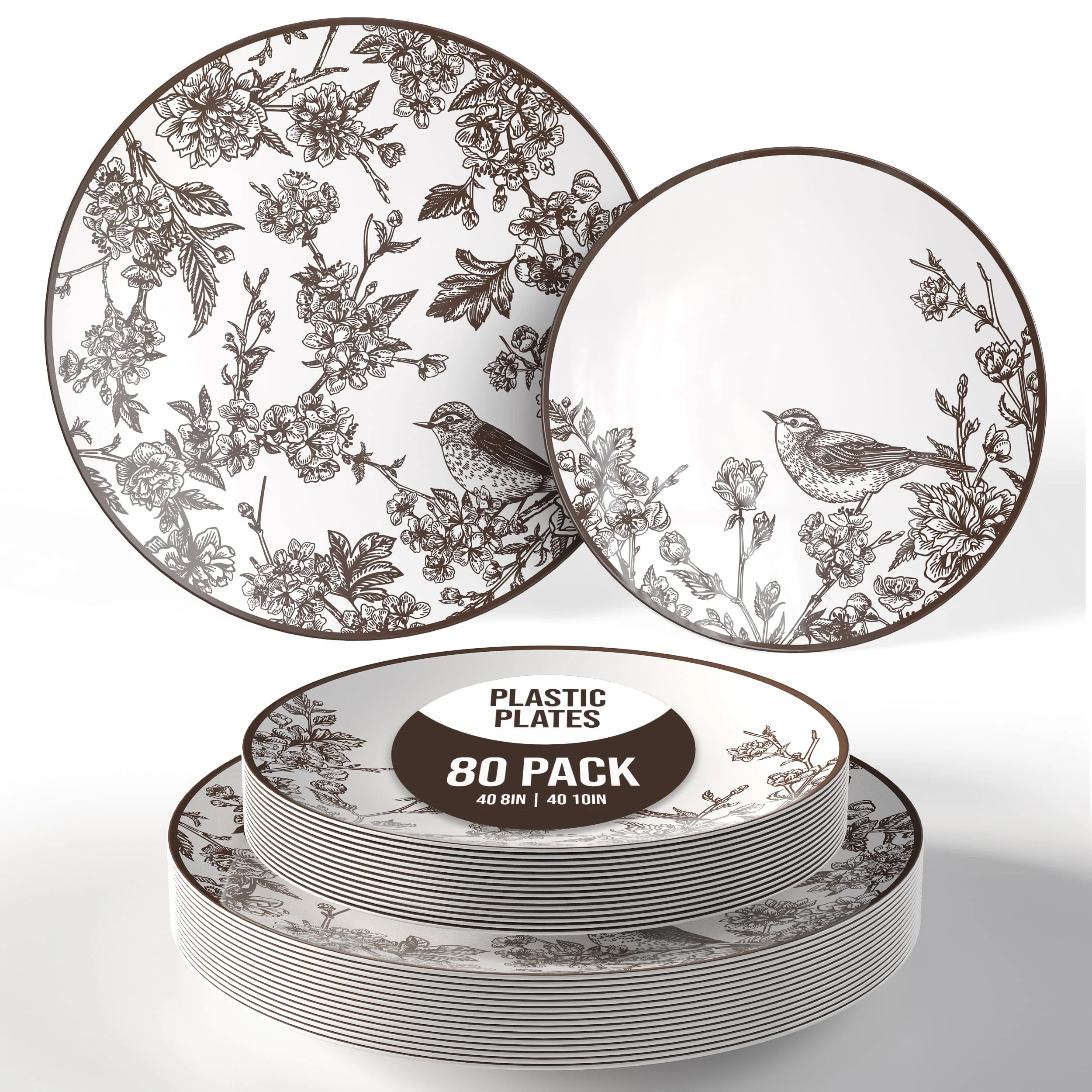 TRENDABLES Rustik Combo Pack 10/10 Plates. 10 inch Plastic Dinner Plates + 8 Inch Plastic Appetizer Plates. Pack of 20 Plates