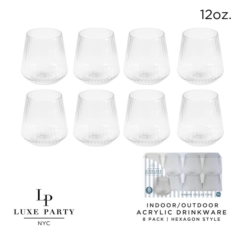 Upscale RIBBED Clear 12 Oz. Plastic Wine Goblets | 8 Cups