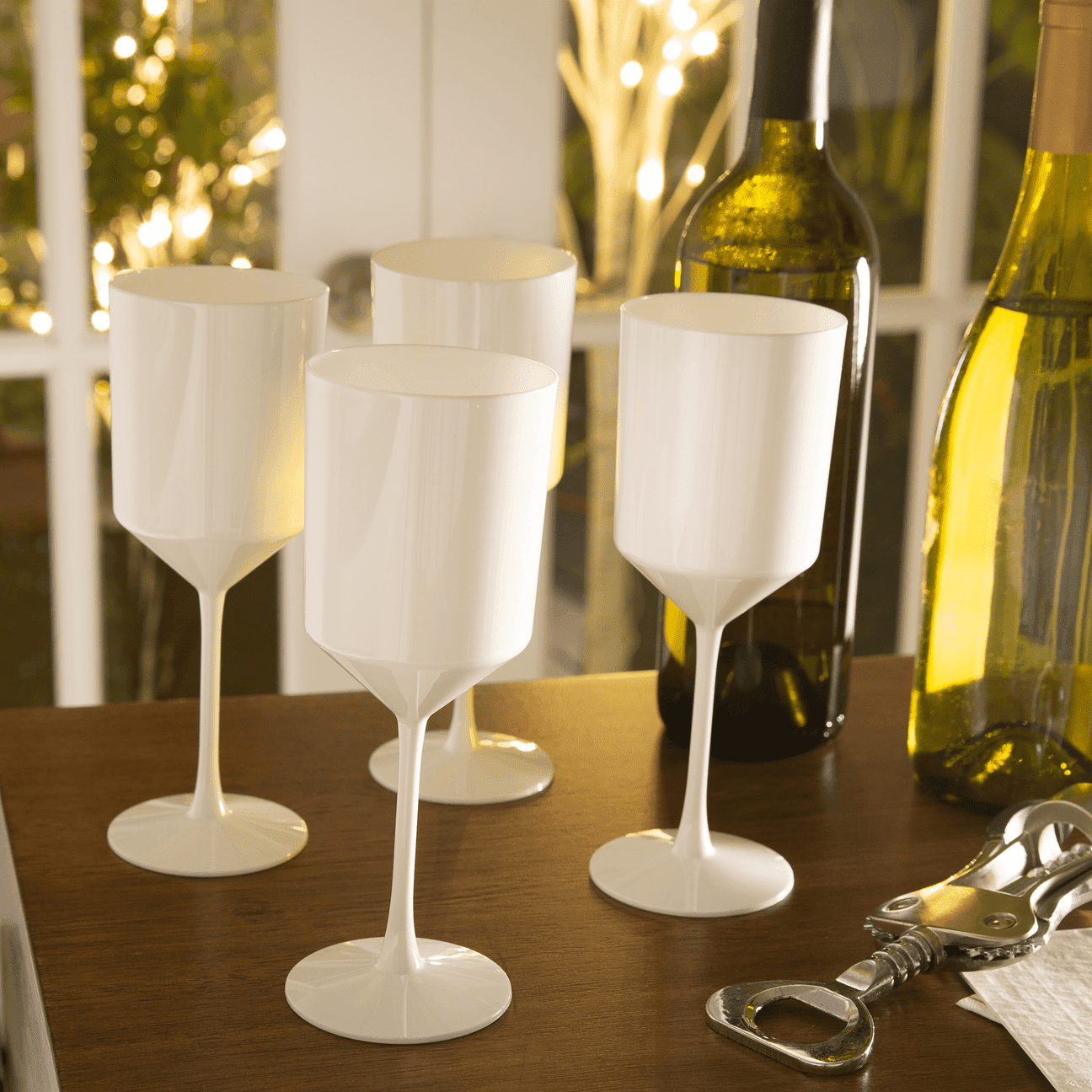 Upscale Round White Plastic Wine Cups | 4 Cups