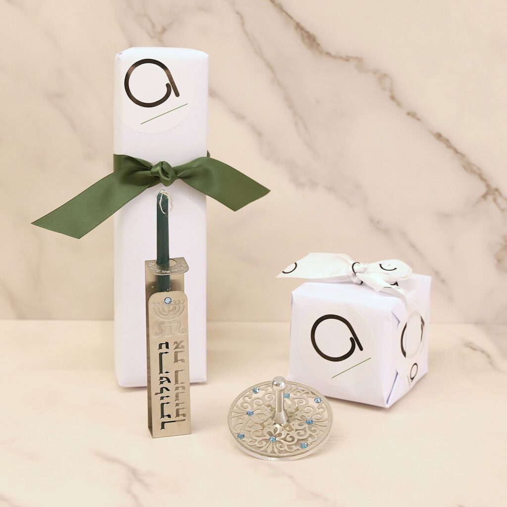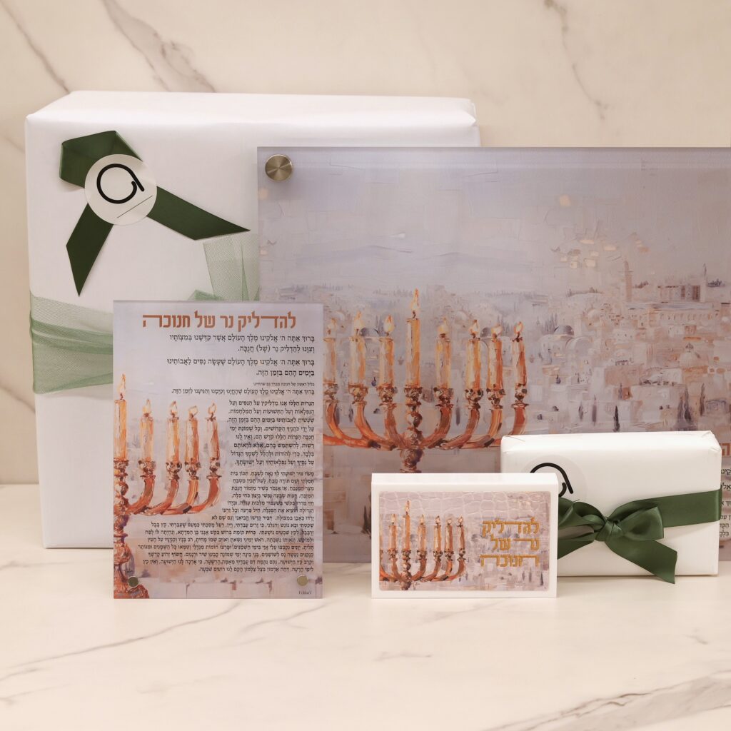 Chanukah Package | Radiant Glow Menorah Tray & Chanukah Brochos Card Set
