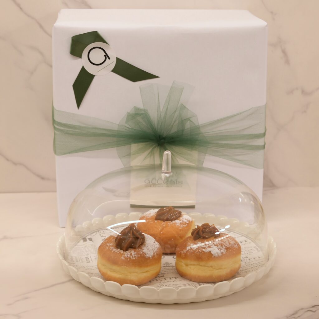 Chanukah Package- Milk White Serving Cake Set with 3 Dairy Caramel Doughnuts