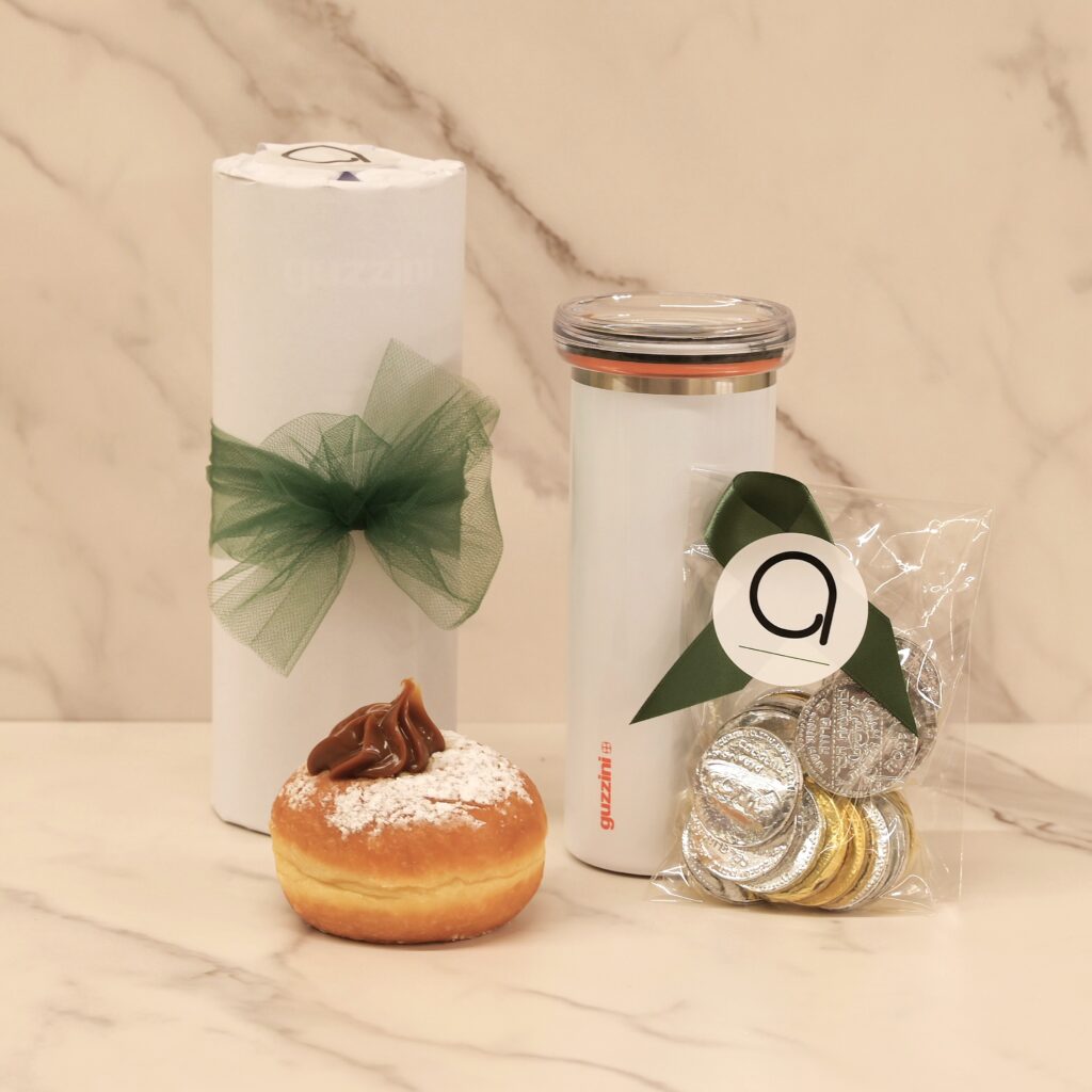 Chanukah Package- Mug by Guzzini, Caramel Doughnut and Chocolate Coins