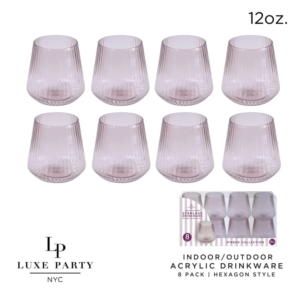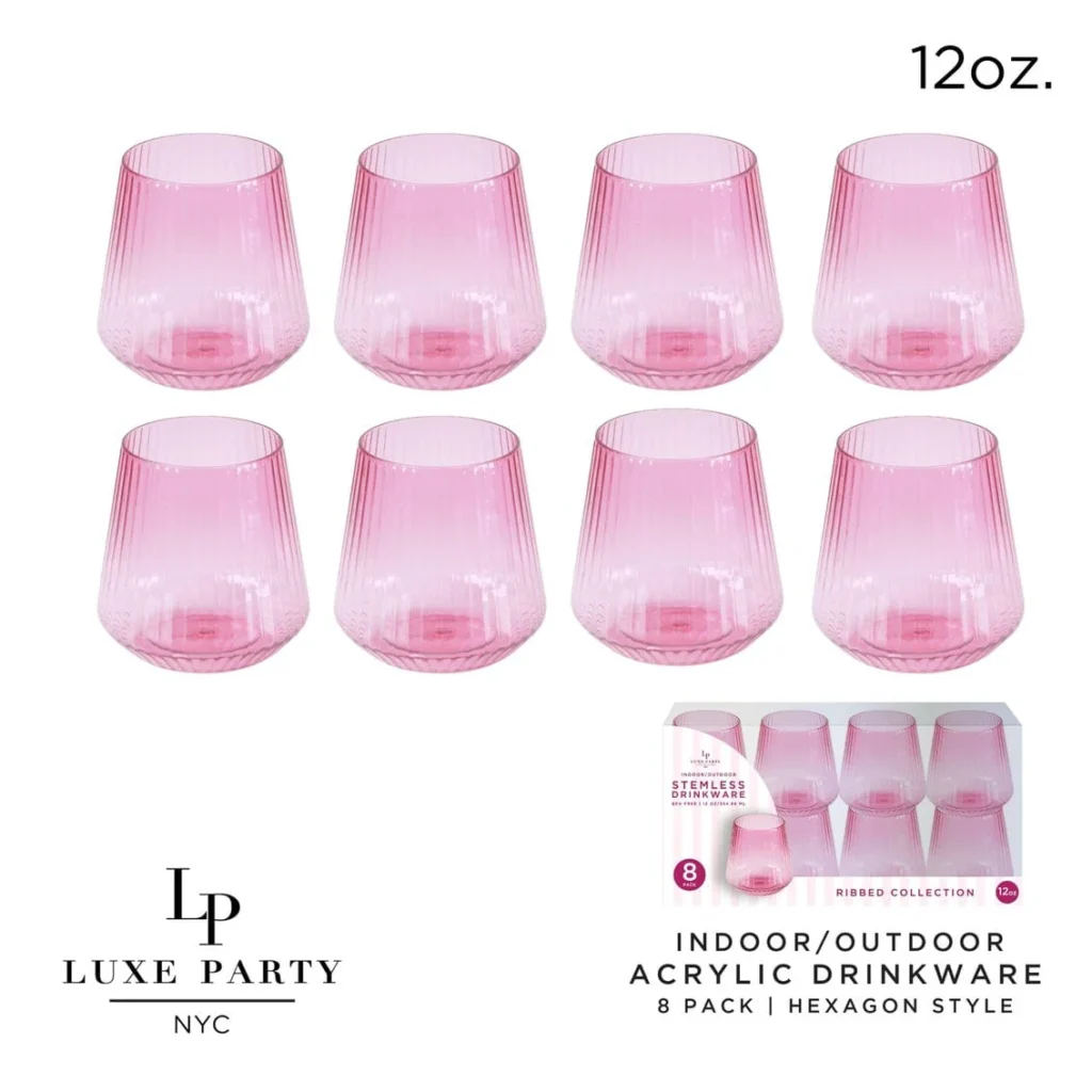 Upscale RIBBED Pink 12 Oz. Plastic Wine Goblets | Pack of 8 Cups