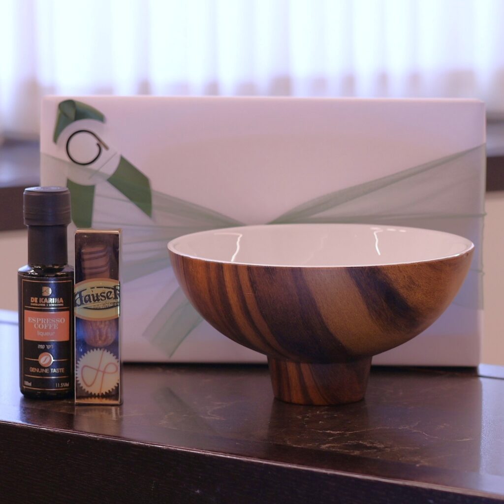 Mishloach Manos | Vanity Bowl & Servers, Wine and Chocolates