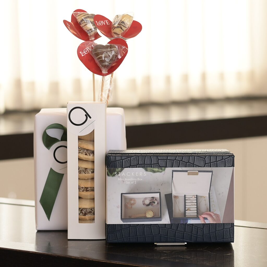 Mishloach Manos for Her | Double Jewelry Box, Chocolate Hearts & Dairy Caramel Cookies
