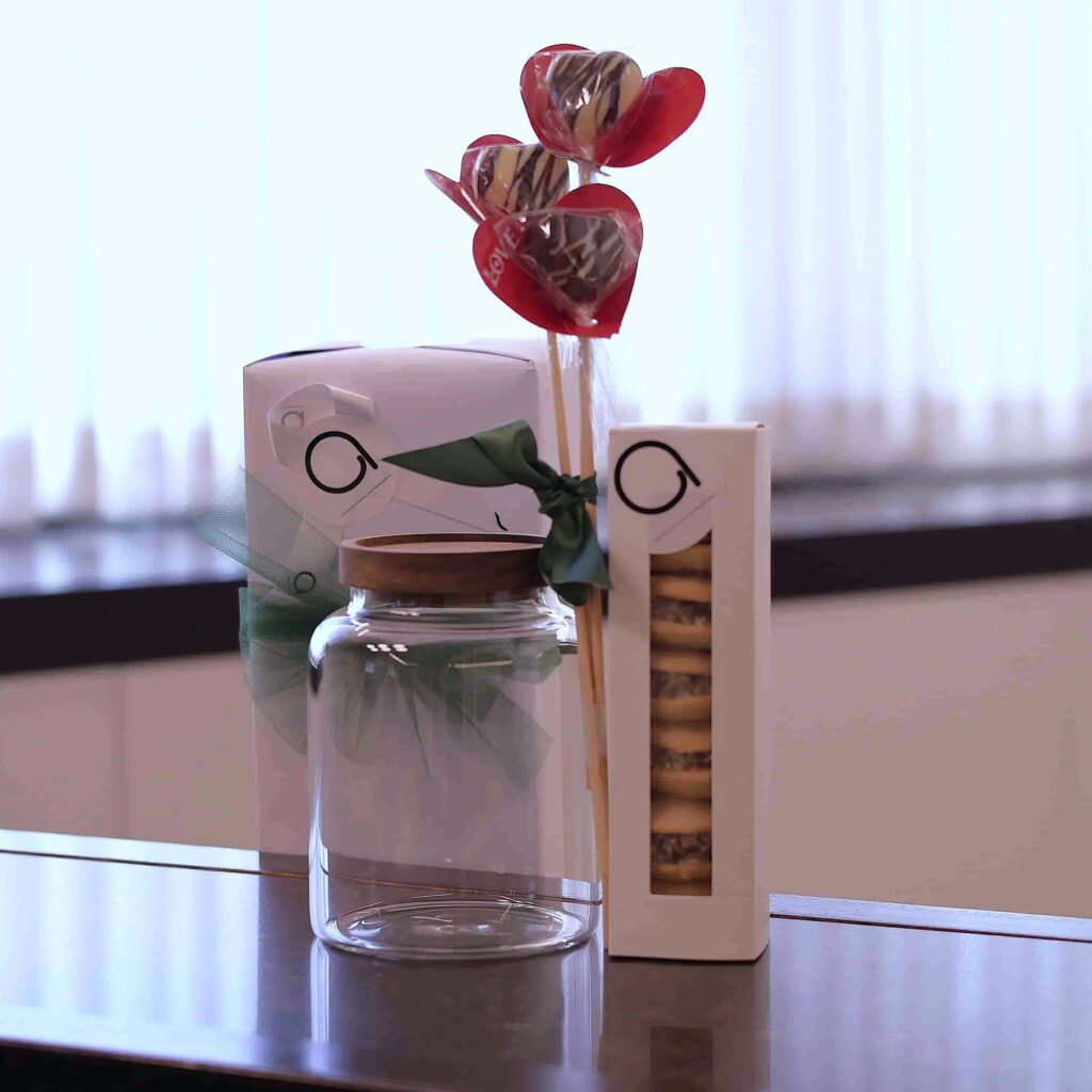 Mishloach Manos | Cookie Jar with Wooden Cover, Chocolate Hearts & Dairy Caramel Cookies