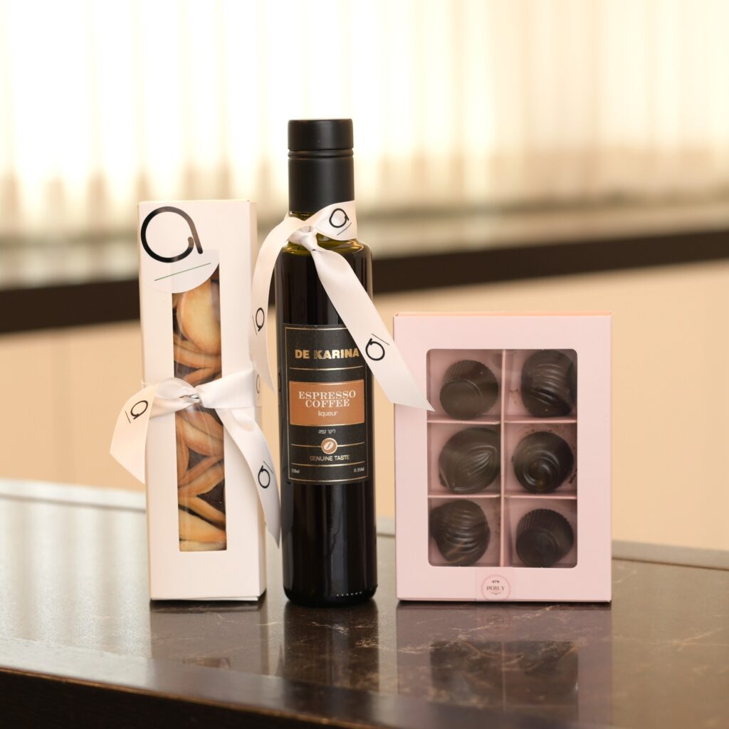Mishloach Manos | Salad Servers by Guzzini, Liquor & Praline Chocolates