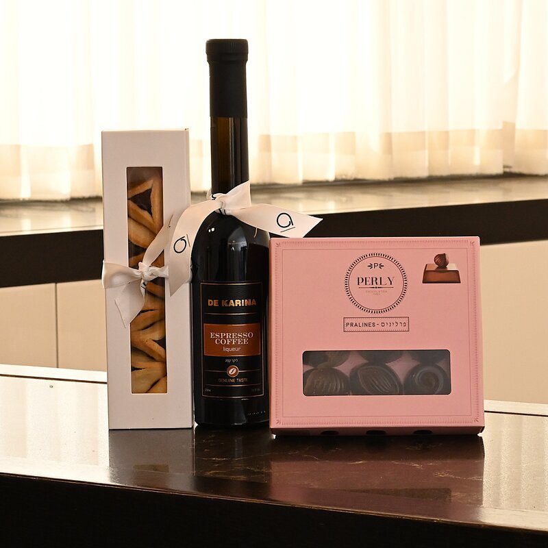 Mishloach Manos | De Karina Liquor, 9-pc Praline Chocolate and Hamentashen