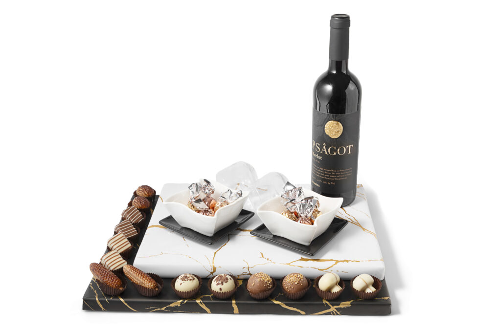 Mishloach Manos | Vanity Bowl & Servers, Wine and Chocolates