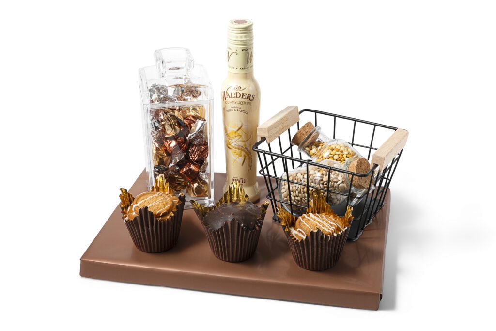 Mishloach Manos | The Duo Set: Pecan & Pearl Bowls with Liquor and Chocolates