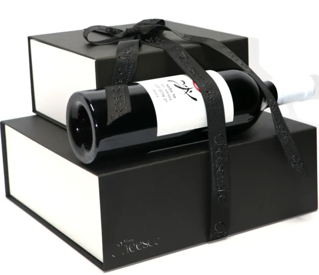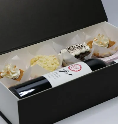 Mishloach Manos | Silver Cake Log, Bartenura Wine & Dairy Caramel Cookies
