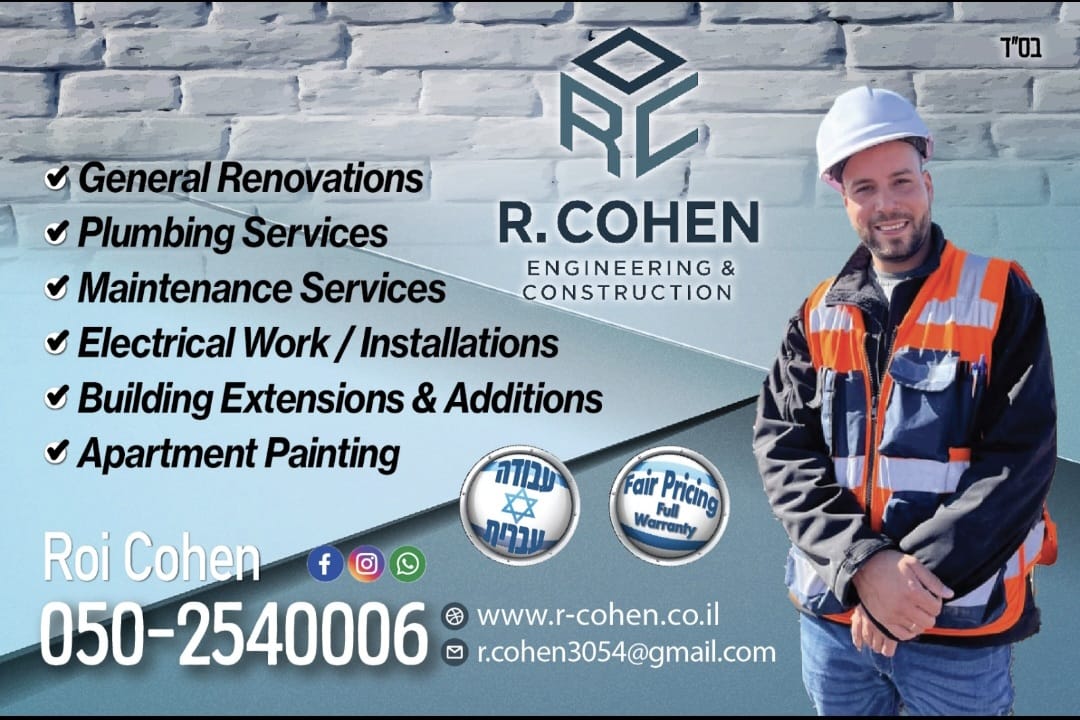 Led by Roi Cohen, a certified Building Engineer and registered contractor, our company is your trusted partner for all construction and renovation needs in the Greater Jerusalem area 📍